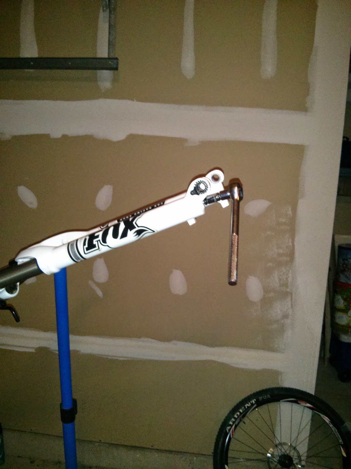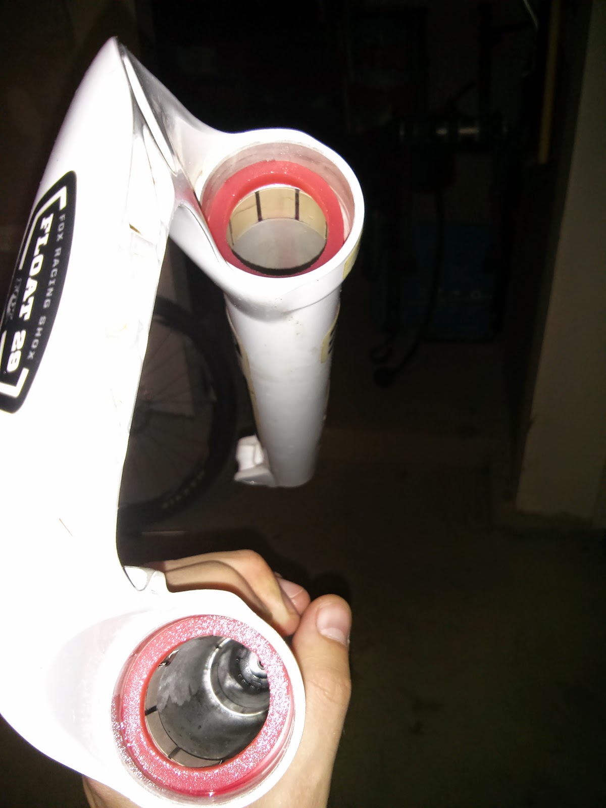 With the lower back on the stanchions, its time to fill each side with oil, each fork is different but you can use the following link to check the correct levels Fox Fork Oil Volumes.
