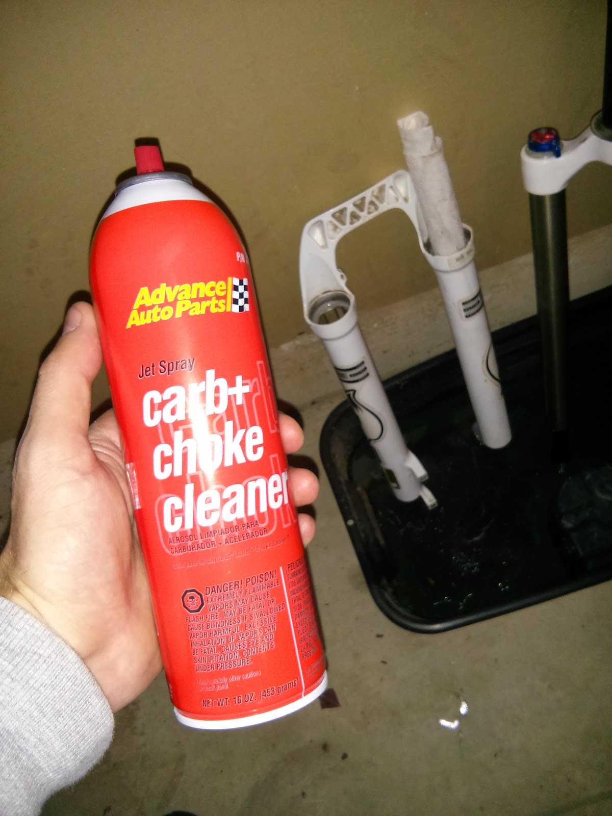 With the old seals out its a good idea to give the lowers and stanchions a clean, brake cleaner is good for this however I had some carb cleaner laying around which works just as well.